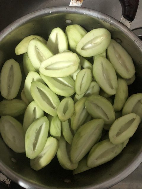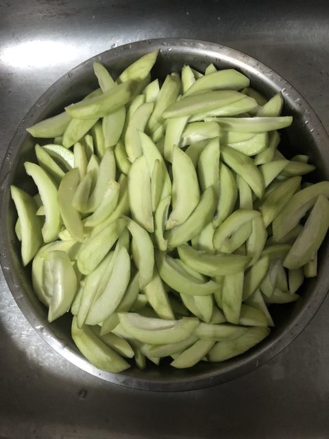 開始切片,(雖然不多,但切完後,也是滿滿的一鍋)