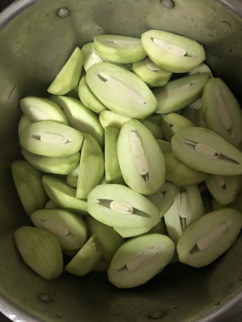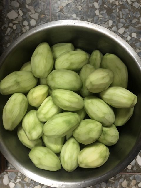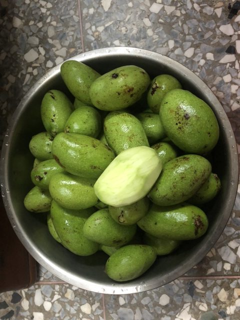青芒果沒有很大顆,先把「它們」放進盆子裡,這一盆大概將近五十顆