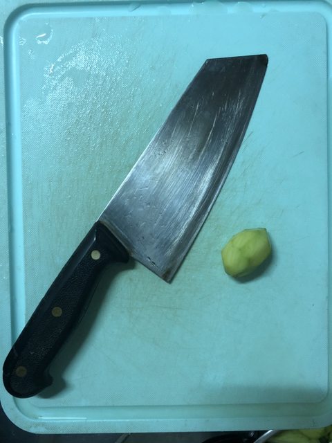 把 菜刀 跟 青芒果 放在一起,可以看的出來,青芒果真的不大 XD