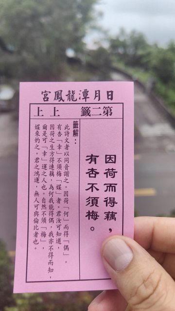 前天心血來潮去了一趟龍鳳宮,月老給了我一隻上上籤。