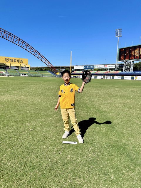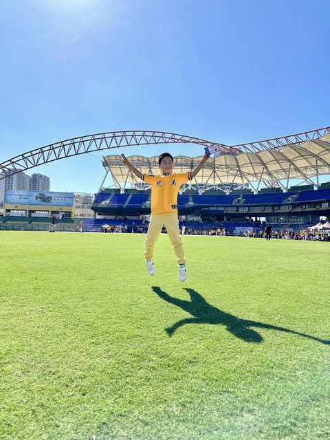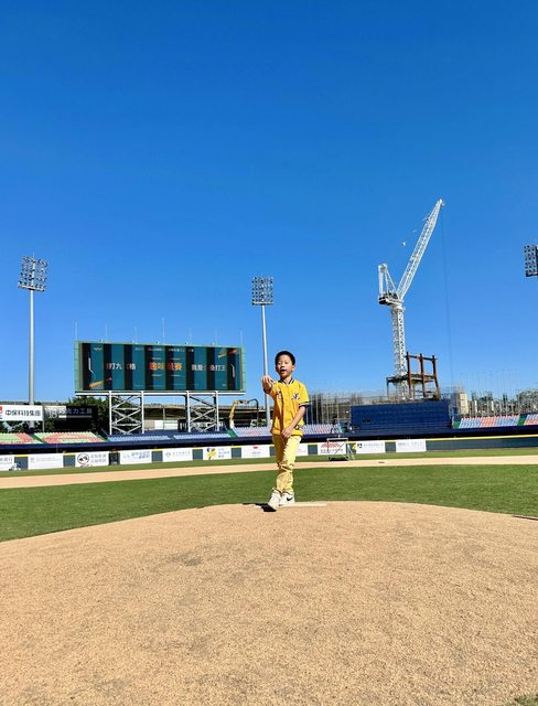 昨天有開放讓大家可以下去球場巡禮,我兒子踏上投手丘時開心的不得了 XD