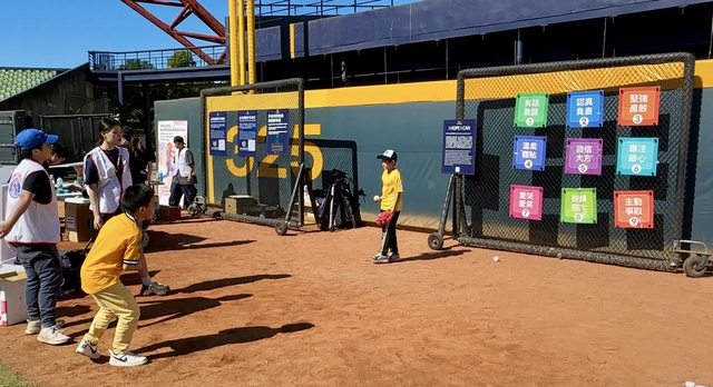 除了場上有很精采的比賽,主辦單位也很用心地在外野區域設置了趣味競賽的區域,一共