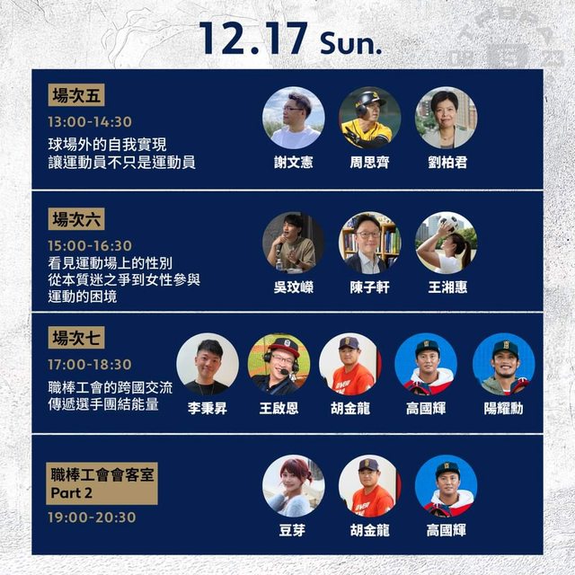 ▊12/17日17:00-18:30|場次7|職棒工會的跨國交流-傳遞選手團結能量|胡金龍、高
