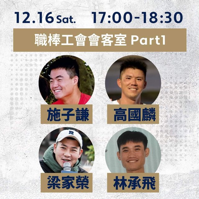 ▊12/16㈥17:00-18:30|職棒工會會客室Part.1|施子謙、林承飛、梁家榮、高國麟、豆