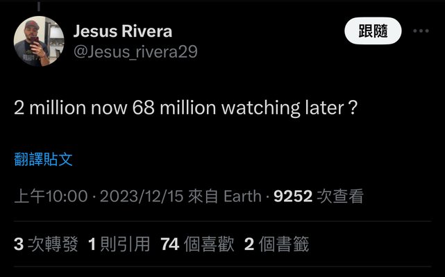→ fman: 都不用上班上課嗎?這數字肯定是全球觀看啦 12/15 13:52