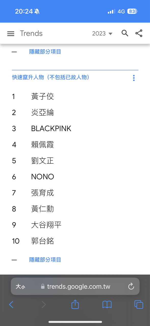 → mutta: 進網站查證一下就好了,是指比起2022的搜尋暴衝最多的,大 12/15 19:46