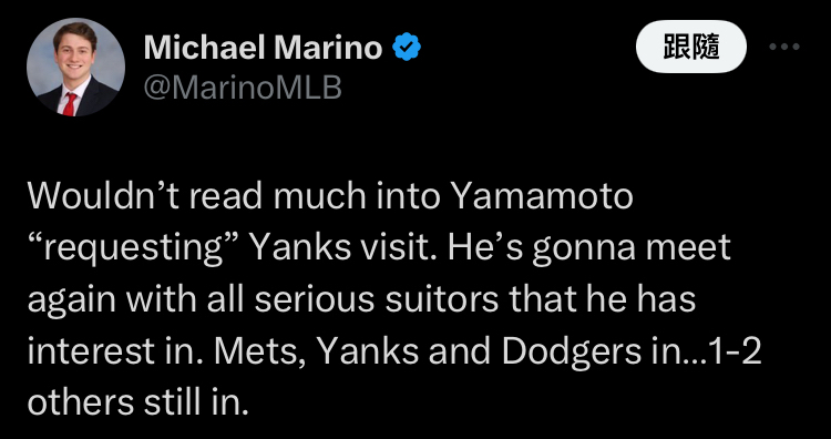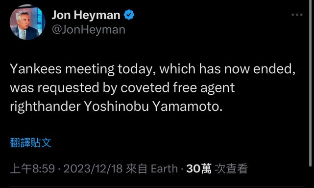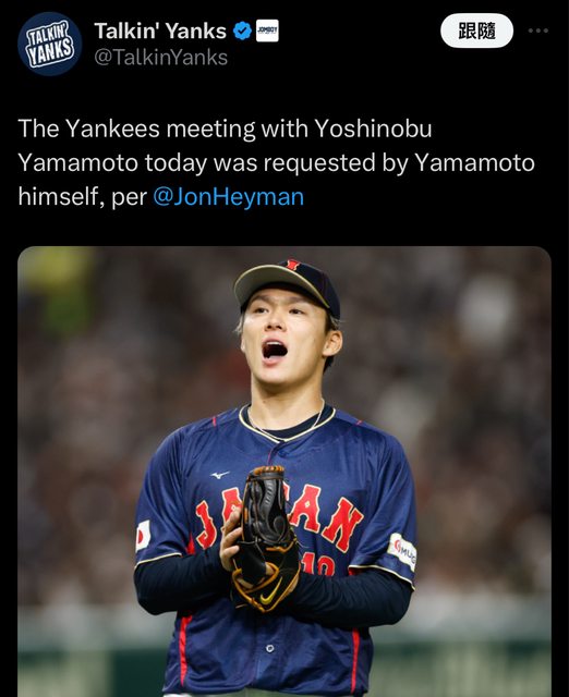 gandalflee: 我山本由伸從小有個洋基夢12/18 09:20
