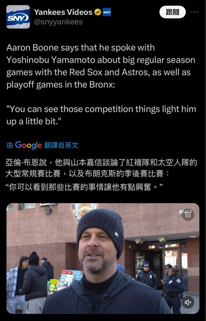 推 same60710: 前天有新聞說山本是高調的人 那洋基應該穩了12/22 11:36