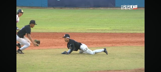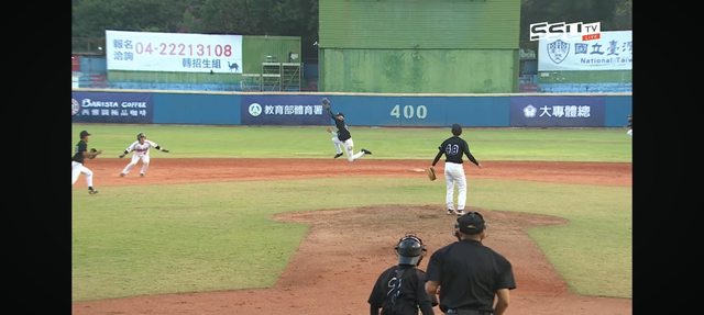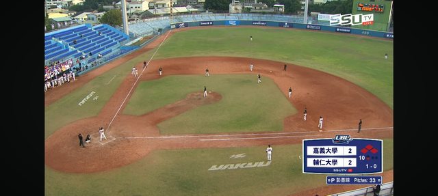 嘉義大學此時選擇把中外野手調進內野做五人內野佈陣