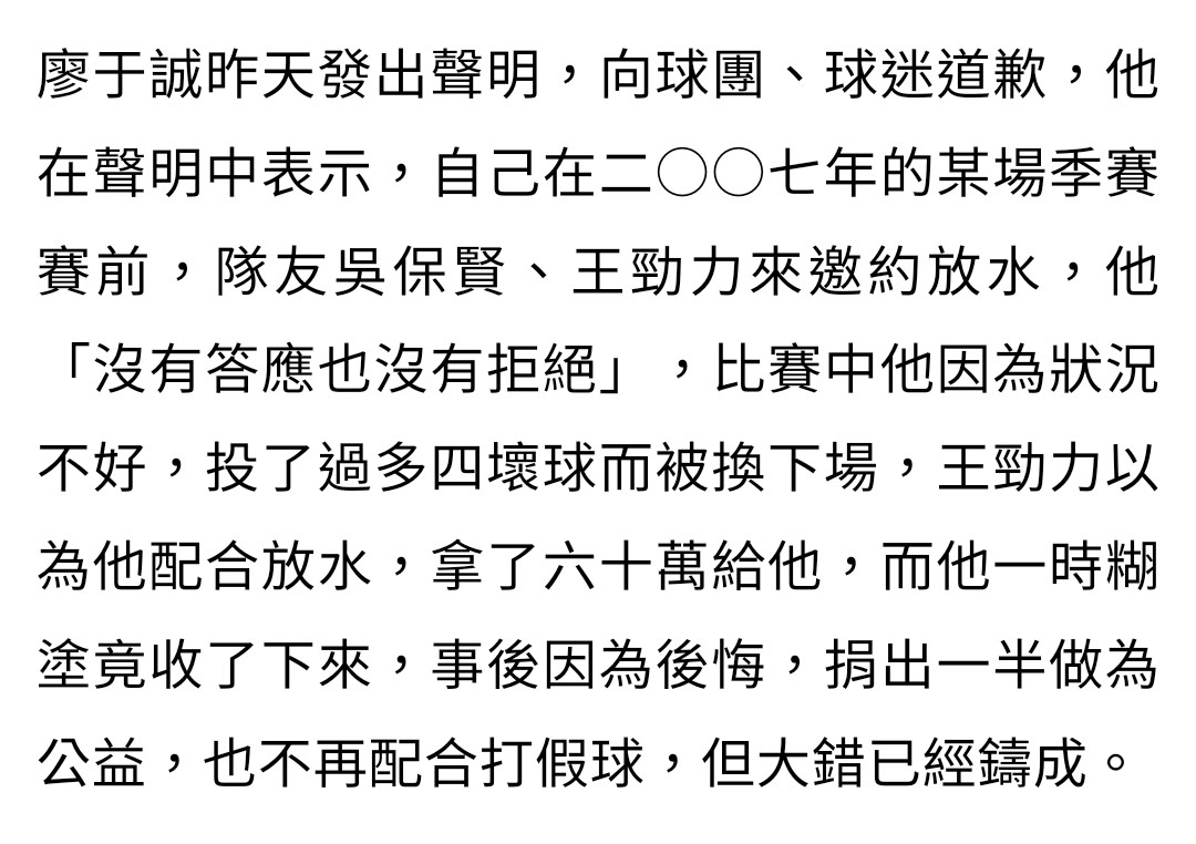 → linchw: 廖于誠收那幾萬塊打假球真的笑死 01/02 09:51