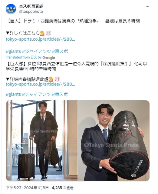 標題[分享] 讀賣巨人1指西舘勇陽 投手