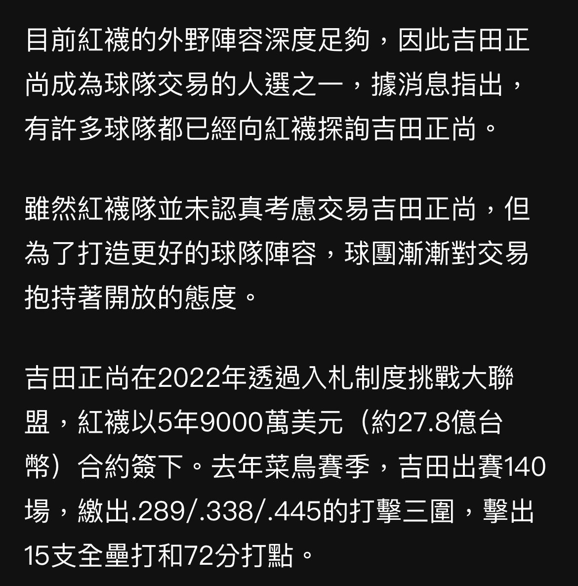 → ccl007: 紅襪搞不好當初也是這樣看吉田 結果現在難交易 笑死 01/11 09:44