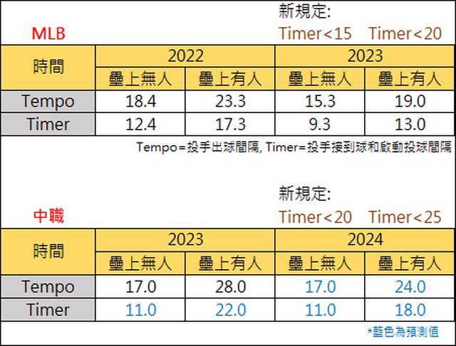 中職新規則也能夠讓壘上有人的投球下降4秒。