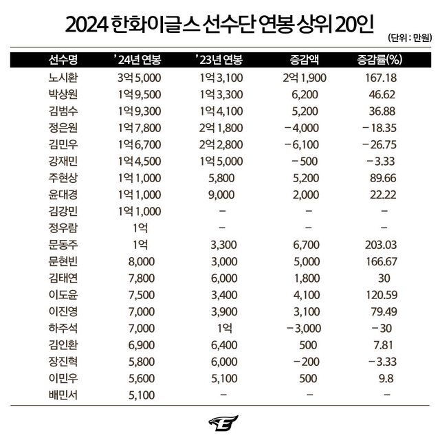 盧施煥(23)從1.31億韓元調漲到3.5億韓元