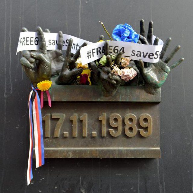 天鵝絨革命時,在瓦茨拉夫廣場的某建築上