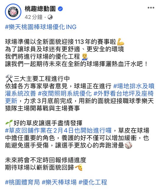 標題[情報] 桃趣總動員 FB(桃園球場更新草皮