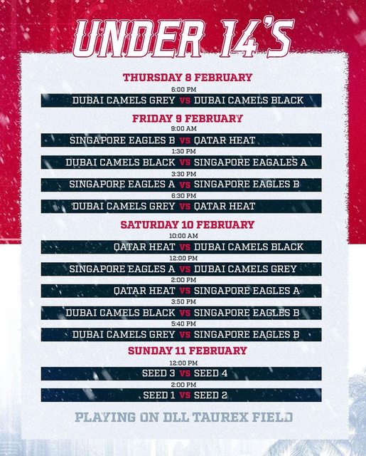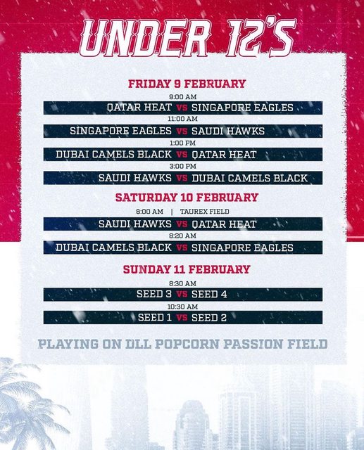 共有U-8、U-10、U-12、U-14、U-18五個層級 U-8:阿聯、卡達、新加坡 U-10:阿聯、沙國、新加坡 U-12:阿聯、沙國、卡達、新加坡 U-14:阿聯、卡達、新加坡 U-18:阿聯、卡達、新加坡