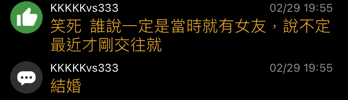 推 KKKKKvs333: 笑死 誰說一定是當時就有女友,說不定最近才剛交往就 02/29 19:55