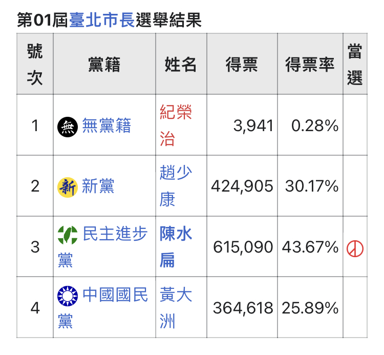 → Kaix2: 老趙有贏過市長選舉嗎118.231.177.155 11/24 16:17