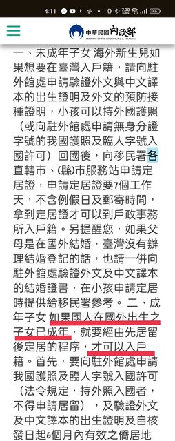 : 推 wayne62: 你講那個 海外出生子女 要在未成年先登 150.116.177.120 12/14 16:17