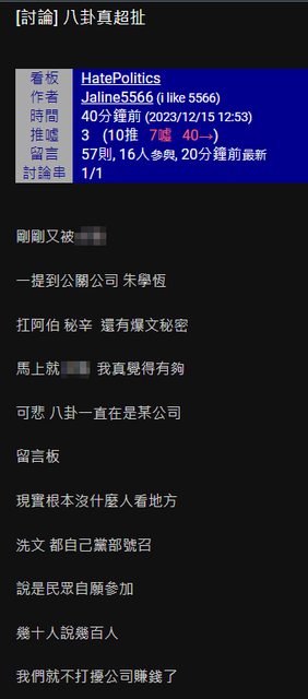 → wwl0909: 故意去八卦被水桶 再上來政黑帶風向 49.216.177.158 12/15 13:53