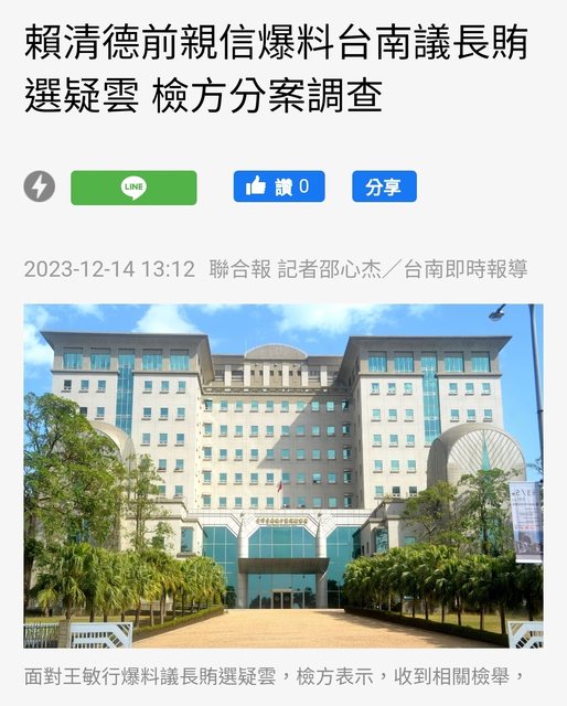 標題Re: [新聞] 前親信爆料 賴清德知情2010台南議長賄選