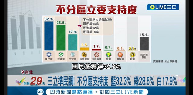 民眾黨、時力、親民黨、新黨