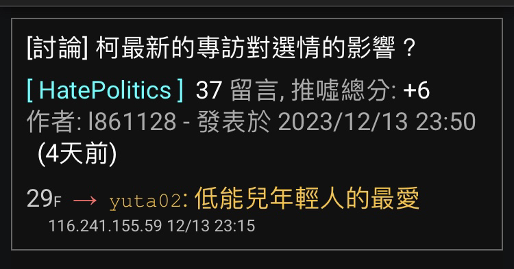 → s13140709: 專業的數據不看 聽柯沒有看數據就在唬 223.136.51.176 12/18 09:03