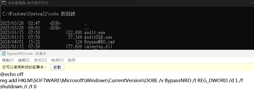 推 LordSpy: cmd跟.bat一樣是批次檔,bypassnro.cmd 218.161.58.193 03/29 11:59