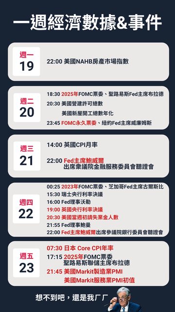 標題[心得] 06/19 ~ 06/23 經濟數據&美股財報行事曆