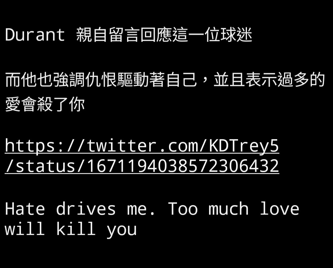 推 icelaw : Kevin Durant 回應為何總是關注自己的酸民 06/23 10:54