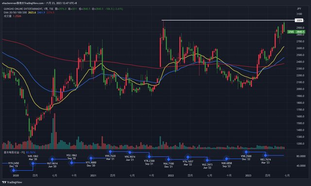 作為萬眾矚目IP 搖曳露營的開發商,06/15上市前一路狂噴、接近翻倍;