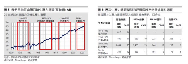 1. 儘管AI有助於加強延續未來5-10年美國經濟延續現有生產力循環,但過去3次生產力循