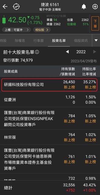 推 zc632Q1 : 低調...今天研揚如果漲停170.5換算捷波大概就有68元 07/18 08:01
