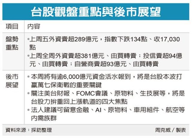 原文標題:台股6,000億活水來了 有助大盤打萬七保衛戰 ※請勿刪減原文標題 原文連結:https://money.udn.com/money/story/5607/7320045 ※網址超過一行過長請用縮網址工具 發布時間:2023/07/24 03:10:30 ※請以原文網頁/報紙之發布時間為準 記者署名:經濟日報 記者周克威 ※原文無記載者得留空 原文內容: 上市櫃公司至月底為止,將進入股利發放的高峰,合計186家股東將有逾5,200億元資金入 帳,再加上151家除息將牽動近千億元股利動向,總計台股本周將有逾6,000億元資金活水 報到,並準備再次投入市場下,將是台股本波打贏萬七保衛戰的重要關鍵。 根據統計,上市櫃公司在本周至月底,將有186家將發放股利,合計高達5,261億元,占今 年將發放的2.05兆元比重高達25%,是今年度發放股利高峰。 其中,最高是26日長榮(2603)的1,481億元,其次是28日鴻海734億元、27日日月光投控 384億元,以及26日台塑267億元、28日台達電255億元與南亞237億元。此外,現金股利將 發放逾百億元的還有萬海、國泰金、台灣大、華碩、和碩、元大金等公司。 另外,市場聚焦的還有25日華擎、富鼎、亞光、上緯投控,26日國巨、天鈺、中橡,27日 上海商銀、世界、南亞科、雙鴻,28日緯創、旺宏、鴻準、瑞鼎、晶技、長榮航太、穩懋 、保瑞、中砂、三福化,31日可成、新普等。 同時,在本周將除息的151家公司中,現金股利發放最多的是26日中鋼157億元、25日大聯 大64億元、26日台新金61億元、24日元太51億元。 當中,除息最多的是弘塑的18元、玉晶光12元、貿聯-KY 9.88572元、凡甲9.4元、茂達 9.000122元,每股現金股利逾6元的還有杰力、博智、新唐、群翊、普萊德、新日興、全 宇昕等公司。 在現金股利將發放5,261億元入帳之際,這151家除息公司預計將發放的現金股利也達964 億元,二者合計高達6,225億元。 統一投顧董事長黎方國、台新投顧總經理呂仁傑表示,股東獲得的現金股利,過往都有約 逾五成的資金會再投入股市。隨第3季進入股利發放的高峰期,只要具下半年營運前景透 明度高、庫存去化告一段落、股價基期偏低等優勢的個股,都有機會獲得股東將現金股利 再次投入,並成為股價的重要買盤、整體台股再攻高的重要資金活水。 https://i.imgur.com/sEUPihY.png