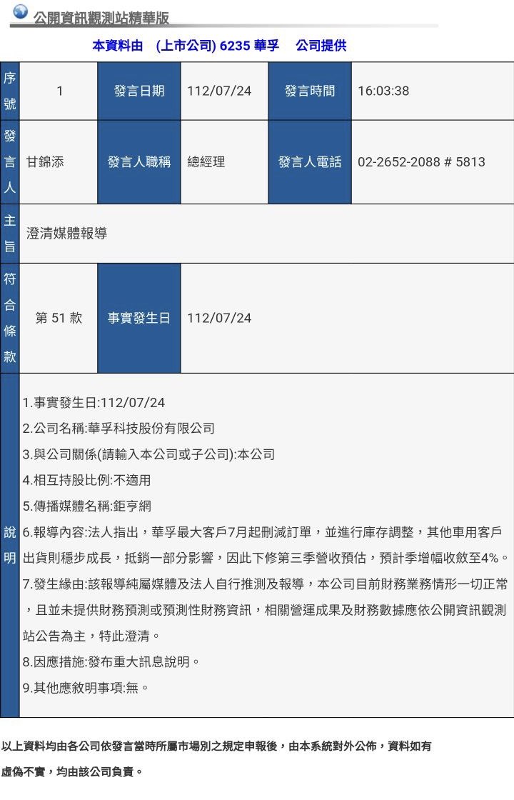 yichuen : 公司已澄清不實報導 07/24 17:12