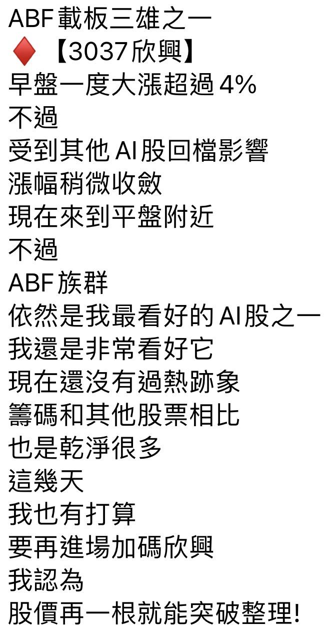 → BUKU : 欣興那時給到本益比30了-.-... 07/25 17:46
