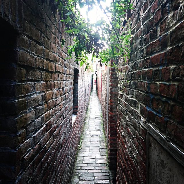 我如今看不見七彩的燈箱廣告,瞧見的僅是紅磚青苔黑瓦,世界慢了,風和徐了、咖啡濃了
