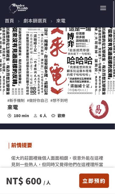 標題急徵東區劇本殺1人