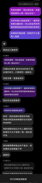 妳在相處還沒滿一個月沒經過我的同意直接幫我訂機票,然後在這段其實只要不合妳的意就