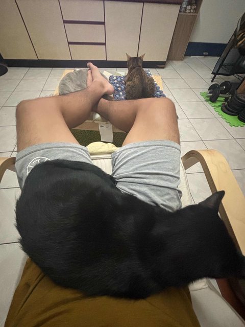人目前在北高工作生活,有一台車與一間房,和兩隻小笨蛋貓咪