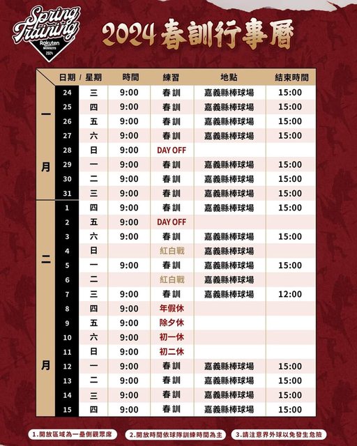 最新的樂天桃猿春訓行程來囉!( ‧ . ‧ )