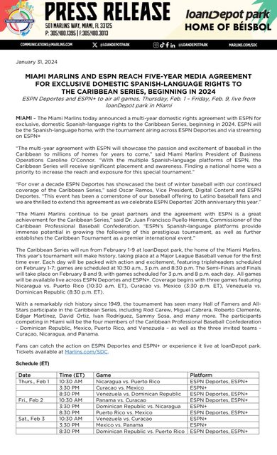 加勒比海大賽也和美國ESPN簽下五年的西語轉播合約了