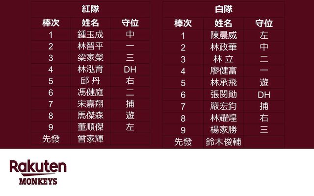 標題[分享] 樂天桃猿 今天紅白戰先發名單