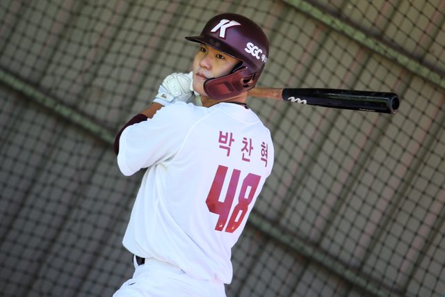 韓職英雄隊的21歲小將朴燦爀傳了一張照片給自己的二軍打擊教練金泰完