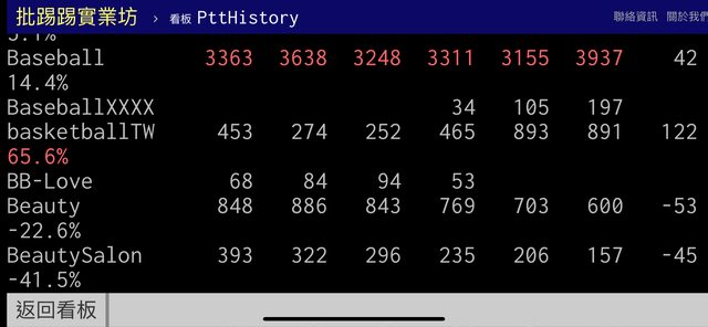 → WaywayPao: 看整年平均的話應該是八卦>西恰>棒球>NBA>股板02/15 02:07