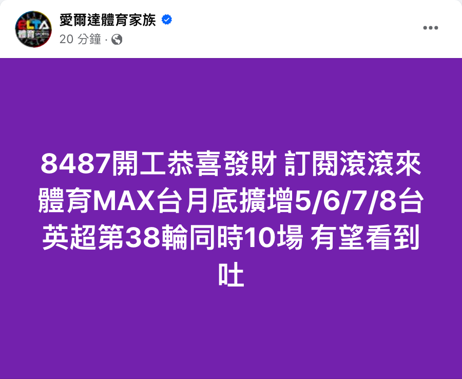 推 axion6012: 愛爾達已經變台灣最大體育台了 02/15 16:20