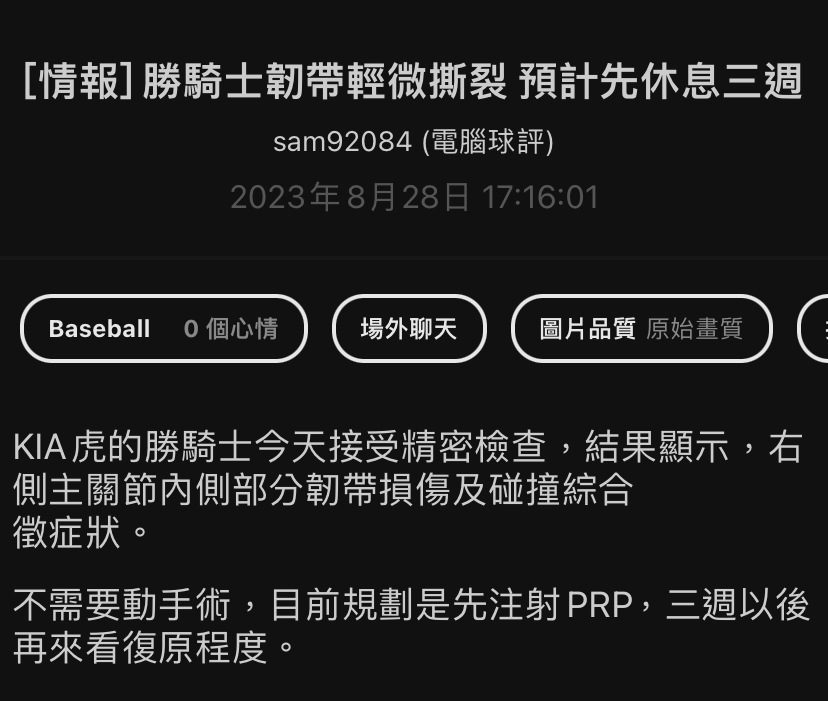 → zxc906383: 不是韌帶撕裂嗎… 02/16 18:26