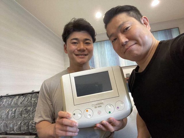 識的訓練員借來了總價400萬日圓的治療器,透過高電壓的刺激深入肌肉與韌帶深層達到