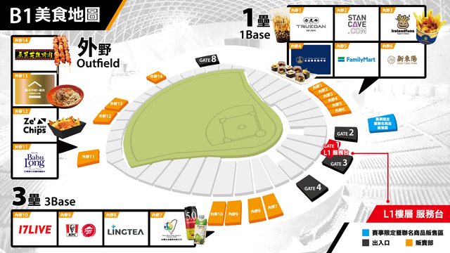 週末即將到來的【TOYOTA 2024 讀賣巨人軍90週年紀念 台灣試合】 大家期待嗎? 公佈賽事期間內部餐食攤商資訊給大家參考! 這次賽事,主辦單位盡力在場內有限的餐飲空間內規劃出超過13家以上的飲食攤位, 內容含括: ・日式餐食:極-KIWAMI-屋台─炒麵、章魚燒、鯛魚燒、團子 ・美式餐食:有肯德基、必勝客、熱狗堡、玉米脆片 ・台式餐食:新東陽的烤香腸、肉乾 ・韓式餐食:原民英雄烤肉的韓式炸雞、串燒 ・飲品相關:珍煮丹、拉圖爾精釀啤酒、椰子水、巴布農水 另外更有全家就是你家的全家便利商店! 這是臺北大巨蛋首次開放全場購票~ 單場總席次超過36,000席的賽事,我們盡力滿足大家的需求! 備註:【幾點可以開放進場?】 14:00開放入場 歡迎大家提早進場逛逛繞繞,也能看到兩隊球員賽前練習的身影哦~ 讀賣巨人軍3月攻蛋,現場觀眾人數 #確定破臺灣紀錄 一起成為歷史見證者 3/2 讀賣巨人 vs. 中信兄弟 3/3 樂天桃猿 vs. 讀賣巨人 -- 來源:讀賣巨人軍90週年紀念 台灣試合 Facebook https://reurl.cc/qr62Yy -- ※ 發信站: 批踢踢實業坊(ptt.org.tw), 來自: 36.224.209.116 (臺灣) ※ 文章網址: https://ptt.org.tw/Baseball/M.1709137554.A.263